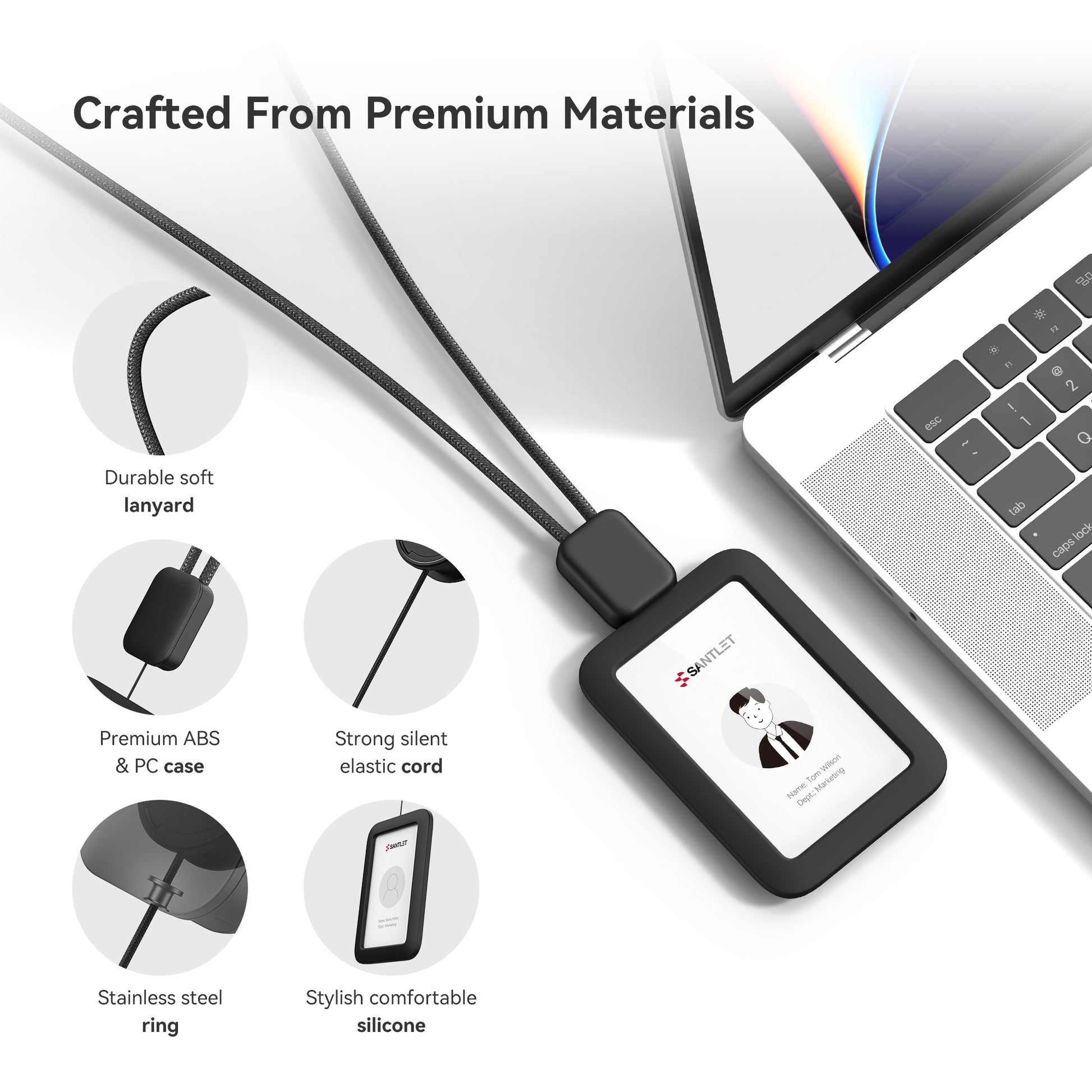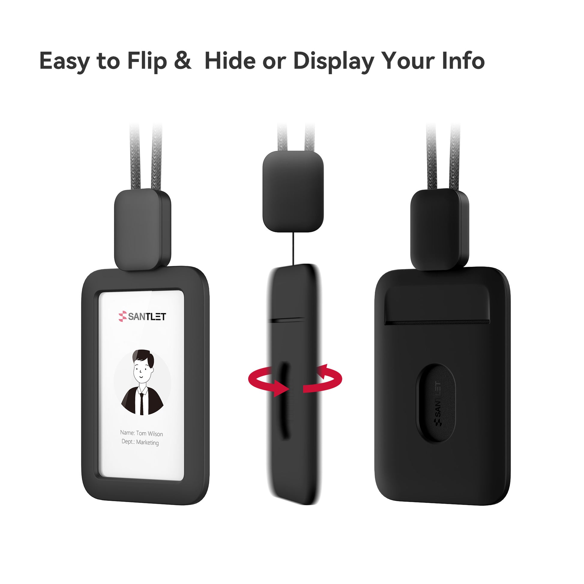 Professional-looking with Style and Sturdy:SANTLET lanyards for ID badges holder comes together in sleek minimal design and high-quality materials. Silicone card case not only securely stores and protects your ID badge access cards, but also adds a great layer of stylish professionalism in your workplace